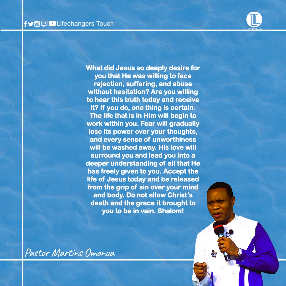 The devotional “Living the Life” is written by Pastor Martins Omonua, the president and Senior Pastor of Lifechangers World Outreach Disciples Ministry Inc. (LCM)