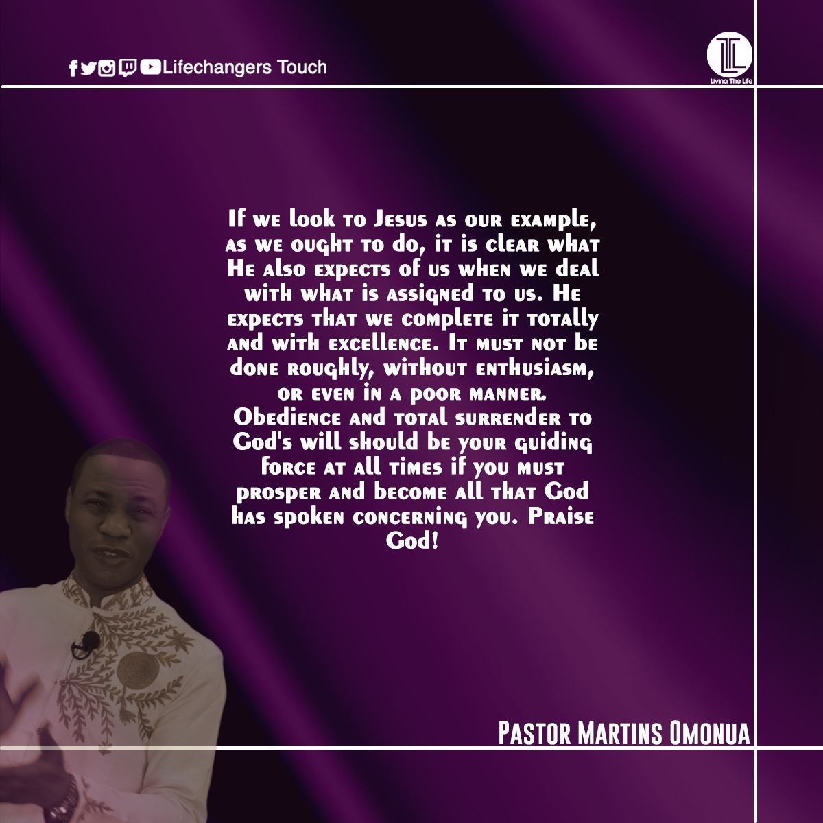 The devotional “Living the Life” is written by Pastor Martins Omonua, the president and Senior Pastor of Lifechangers World Outreach Disciples Ministry Inc. (LCM)
